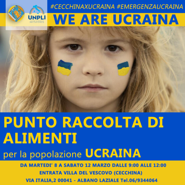 𝐑𝐀𝐂𝐂𝐎𝐋𝐓𝐀 𝐒𝐓𝐑𝐀𝐎𝐑𝐃𝐈𝐍𝐀𝐑𝐈𝐀 𝐏𝐄𝐑 𝐋’𝐔𝐂𝐑𝐀𝐈𝐍𝐀 L’Associazione Culturale Pro Loco Cecchina ha organizzato una raccolta alimentare a sostegno della popolazione civile ucraina. I beni raccolti saranno portati alla chiesa di S. Sofia in via Boccea (a Roma), da dove partiranno per arrivare nelle zone di conflitto e nei campi profughi. 𝐃𝐎𝐕𝐄 𝐄 𝐐𝐔𝐀𝐍𝐃𝐎 troverete i volontari ad aspettarvi all’ingresso del parco Villa del Vescovo nei seguenti giorni ed orari: MARTEDÌ 8 MARZO ore 9:00 – 12:00 MERCOLEDÌ 9 MARZO ore 9:00 – 12:00 GIOVEDÌ 10 MARZO ore 9:00 – 12:00 VENERDÌ 11 MARZO ore 9:00 – 12:00 SABATO 12 MARZO ore 9:00 – 12:00 𝐂𝐎𝐒𝐀 𝐏𝐎𝐑𝐓𝐀𝐑𝐄 al momento la priorità sono gli alimenti a lunga conservazione, come ad esempio: cibo in scatola (carne, pesce, legumi, etc..) pasta riso olio di girasole in lattina caffè, thè nutella barrette latte in polvere NB: Per garantire che le confezioni arrivino integre a destinazione, non saranno…