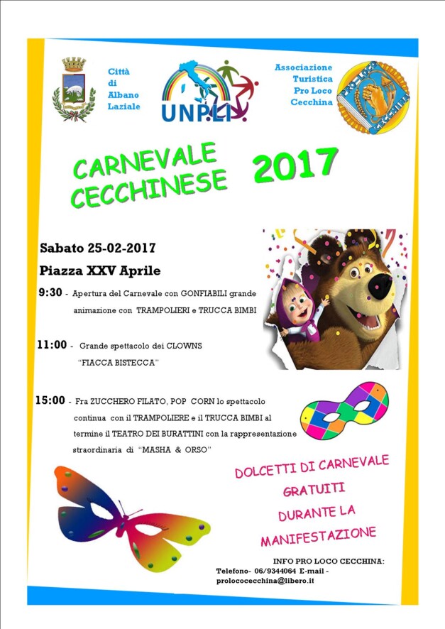 L’associazione turistica “PRO LOCO CECCHINA” presentano il programma del Carnevale Cecchinese 2017. Vi Aspettiamo Numerosi!! Scarica il Programma Completo