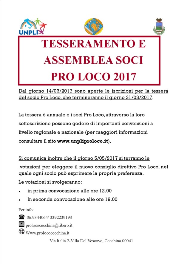 Tesseramento e assemblea soci Pro Loco 2017