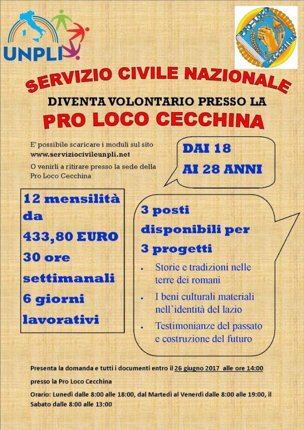 Diventa volontario presso la pro loco cecchina. Scarica il Programma Completo